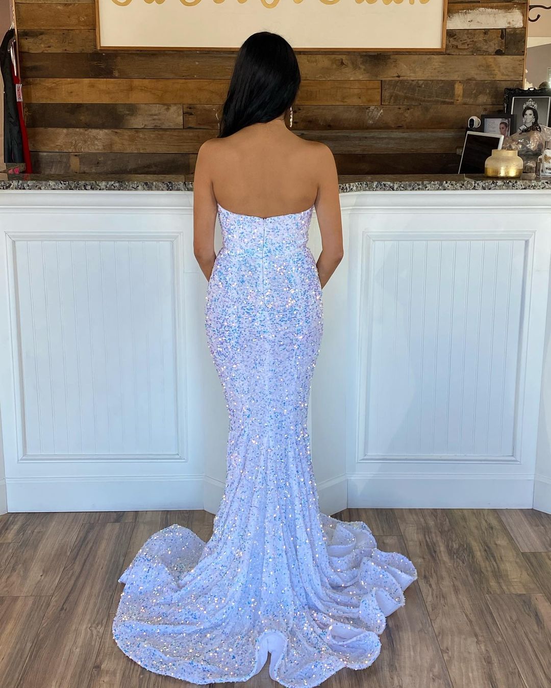 Sparkly Mermaid V Neck White Sequins Long Prom Dresses