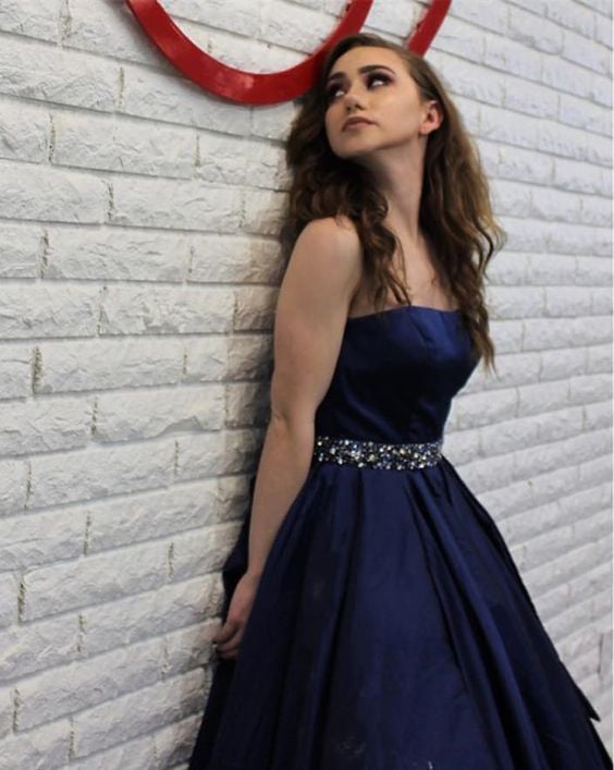 A-Line Tube Navy Blue Long Prom Dress with Beading