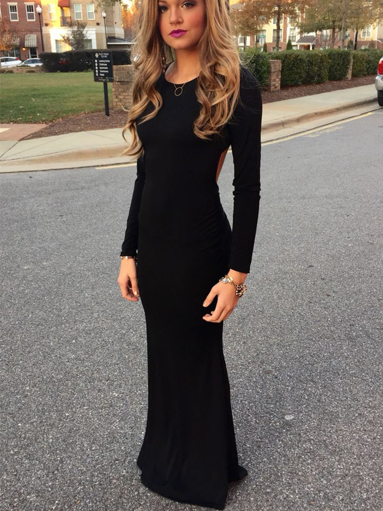 Elegant Mermaid Long Sleeves Black Prom Dresses, Evening Dresses