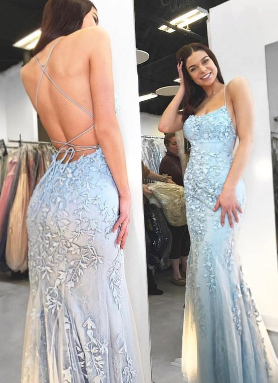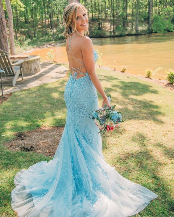 Mermaid Scoop Neck Cross Back Red Lace Prom Drseses,2020 Evening Party Dresses