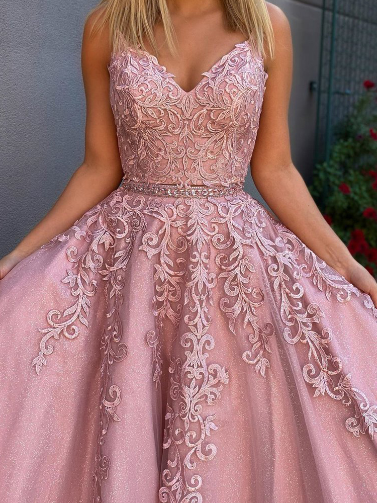 Fashion Blush V Neck Appliques Beaded Prom Dress, Party Dress