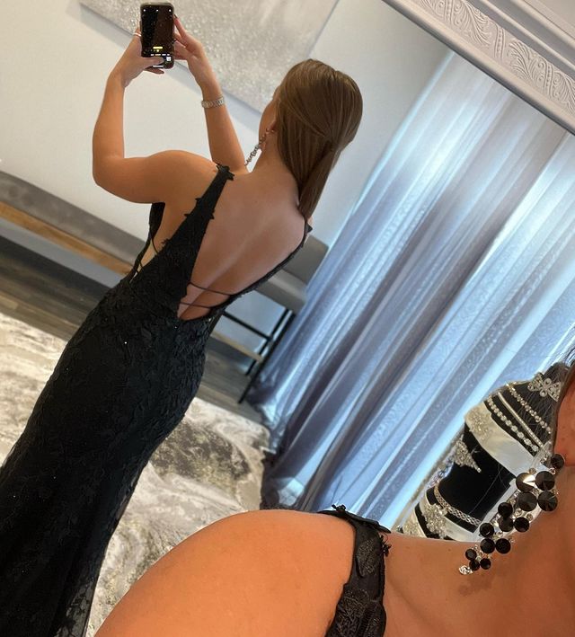 Charming Mermaid Deep V Neck Black Prom Dress with Appliques