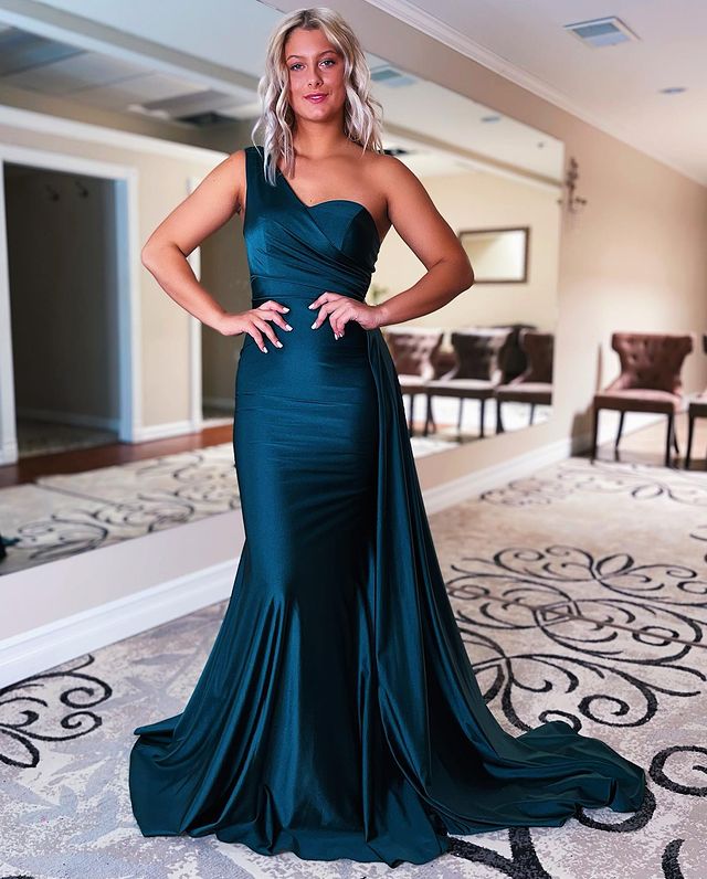 Charming Mermaid One Shoulder Dark Red Prom Dress. Evening Dresses