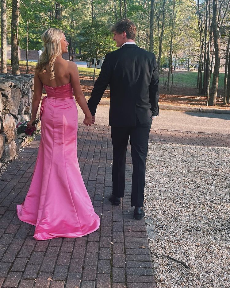 Sweet Mermaid Pink Satin Long Prom Dress with Bow