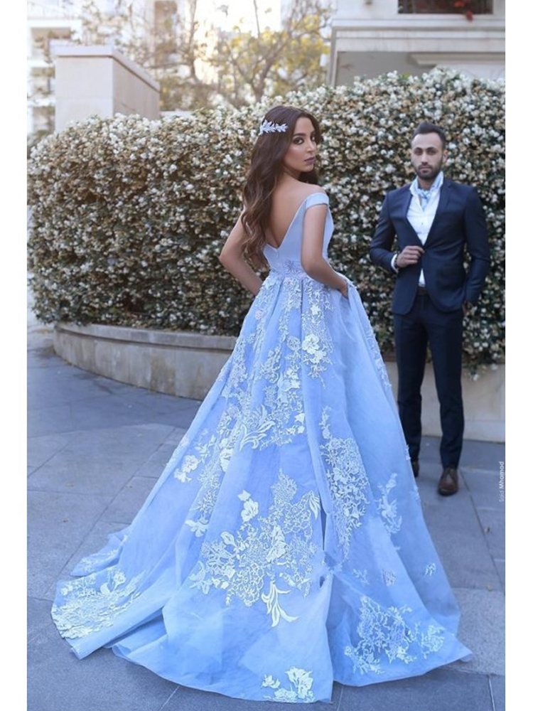 Glamorous Spaghetti Straps Lace Blue Wedding Dresses Princess With Crystals