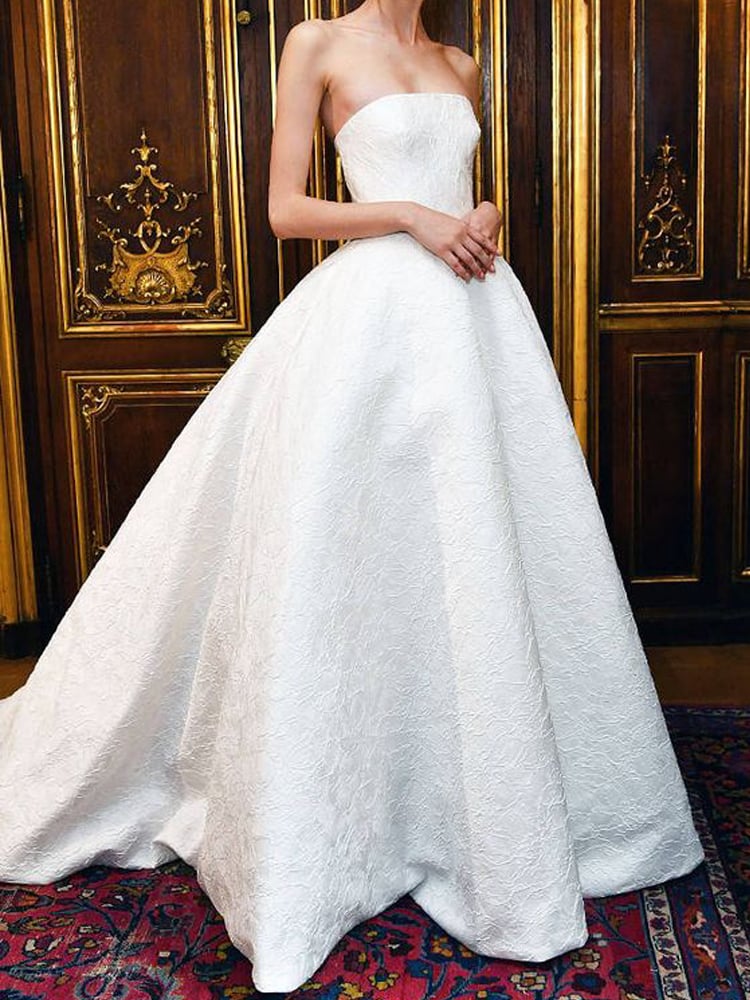 Classy A-Line Strapless Sweetheart Open Back White Satin Lace Long Wedding Dresses