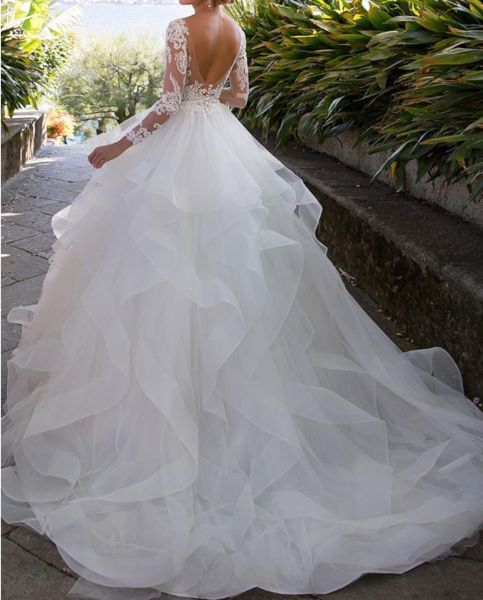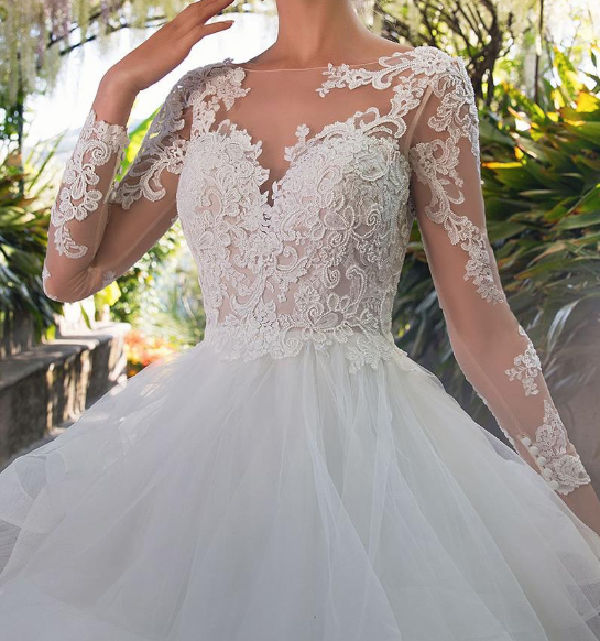 Ball Gown V Neck Long Sleeves Lace Wedding Dresses with Beading