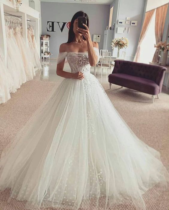 Fairy Ball Gown Off the Shoulder Tulle Lace Wedding Dresses