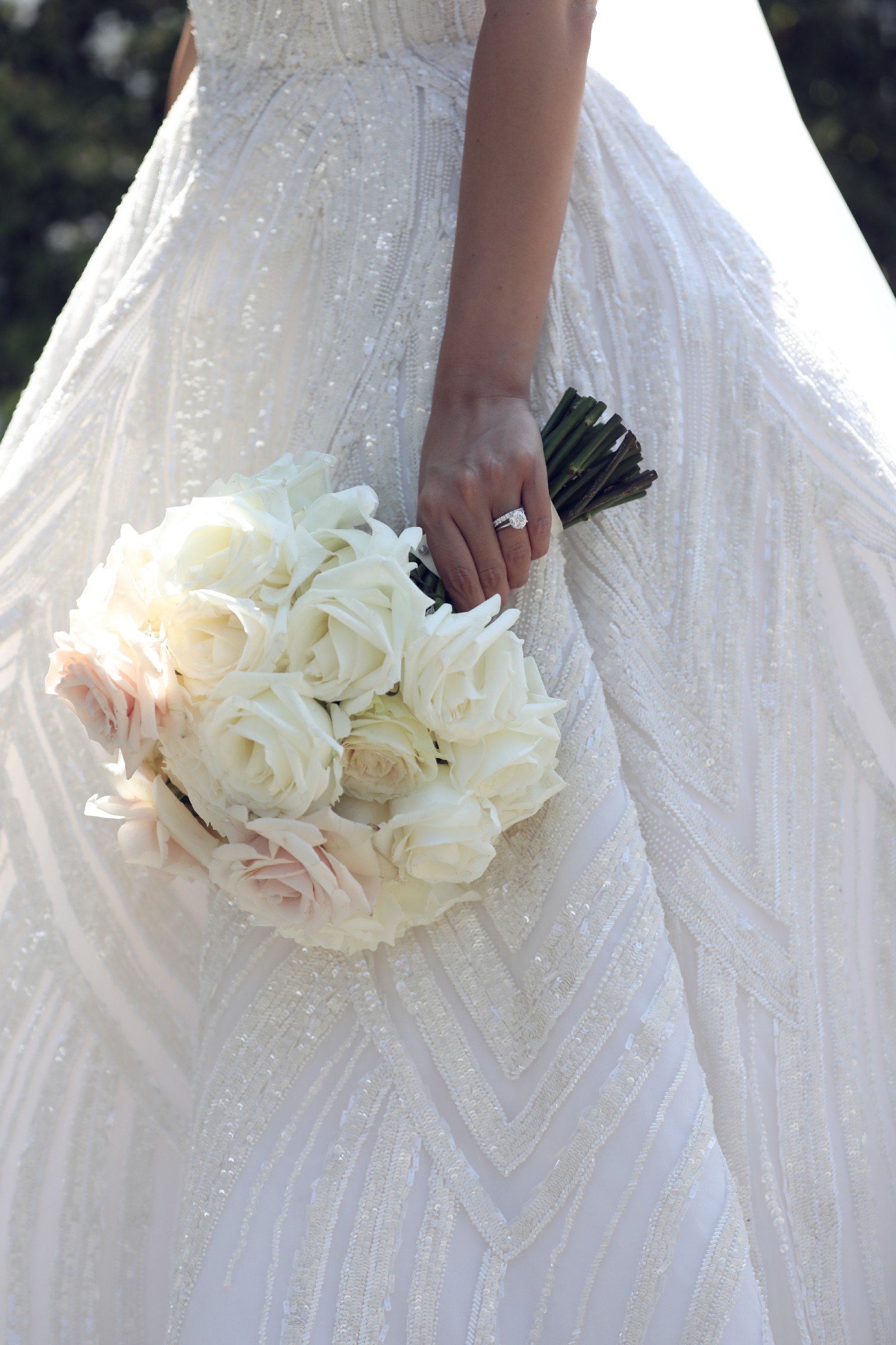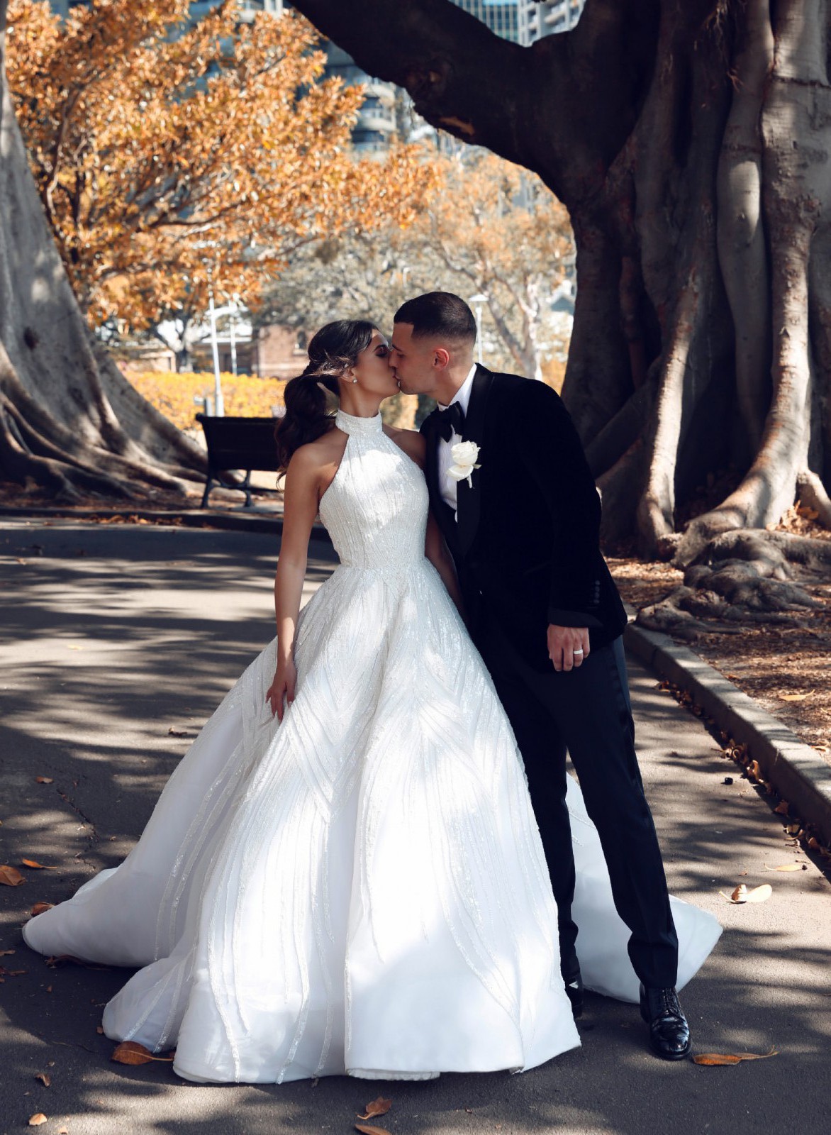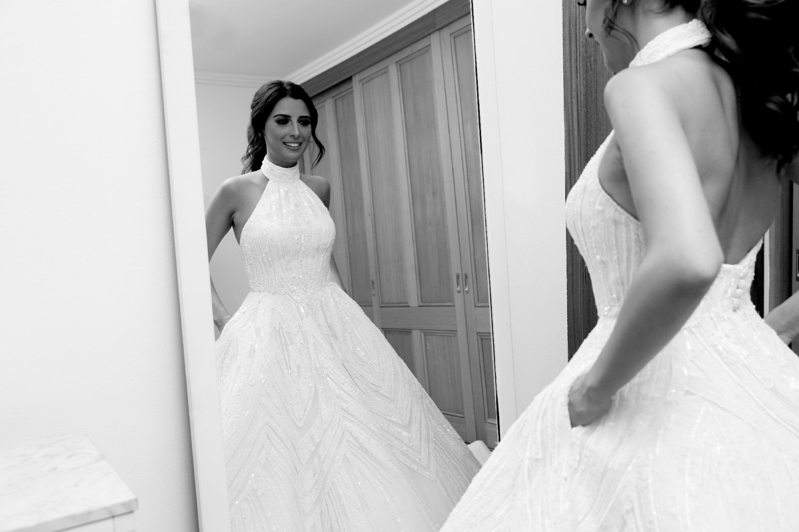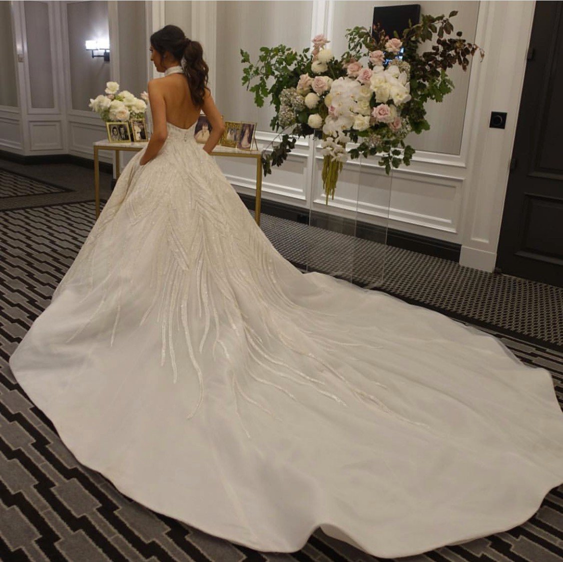 Luxurious Ball Gown Hlater High Neck Backless Sequins Wedding Dresses with Pockets