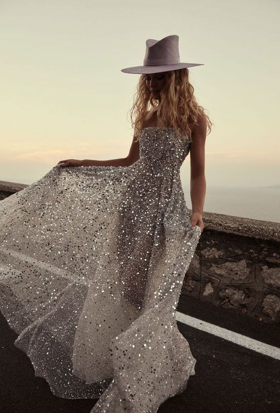 Fashion See Through Sparkly A Line Strapless Sequins Wedding Dresses