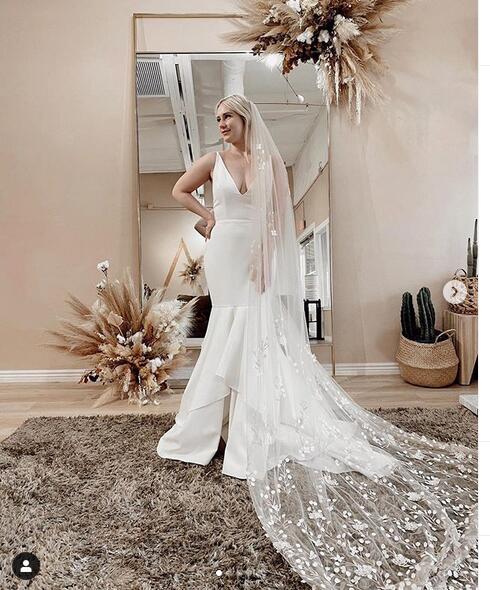 Chic Mermaid V Neck White Satin Wedding Dresses with Train