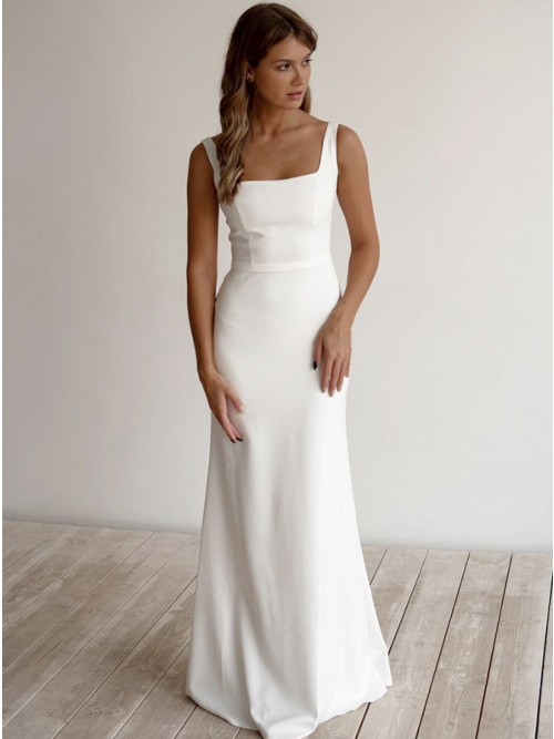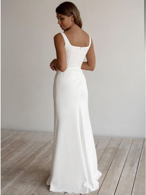 Chic Elegant Mermaid Square Neck Soft Satin Wedding Dresses