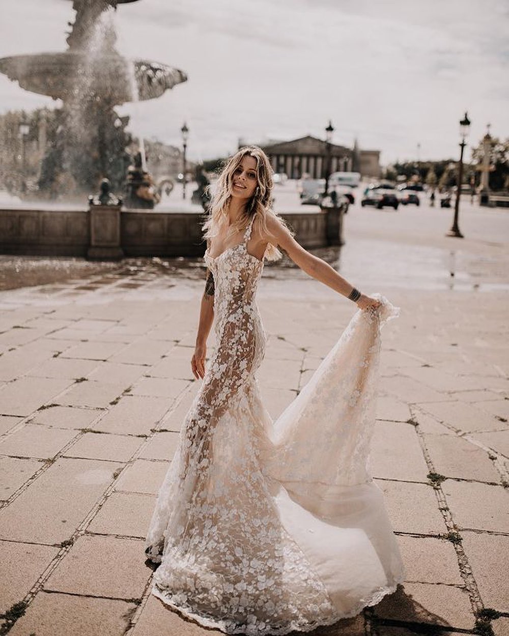 Romantic Luxuerious Mermaid Straps 3D Lace Wedding Dress for Beach Wedding
