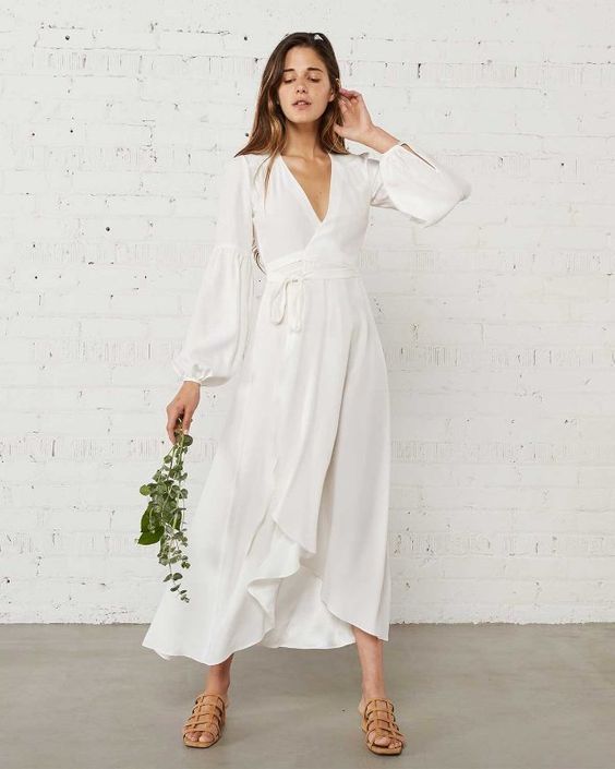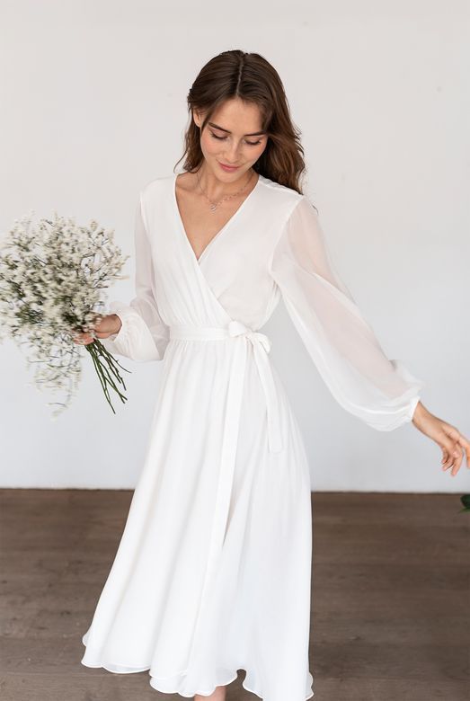 Boho A Line V Neck Chiffon Short Wedding Dress with Long Sleeves