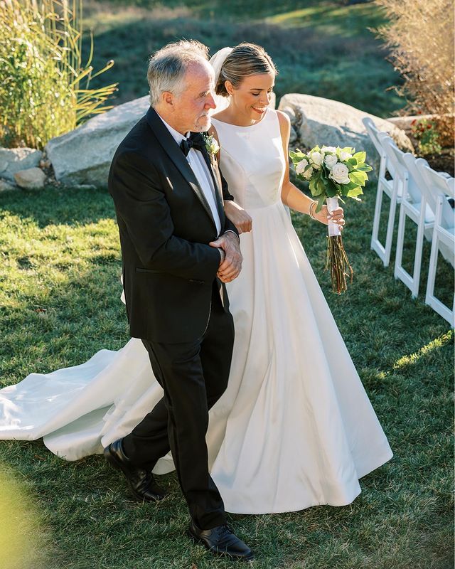 Simple A-Line Boat Neck White Satin Wedding Dresses