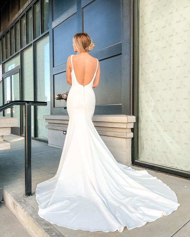 Elegant Mermaid Scoop Neck Satin White Wedding Dresses