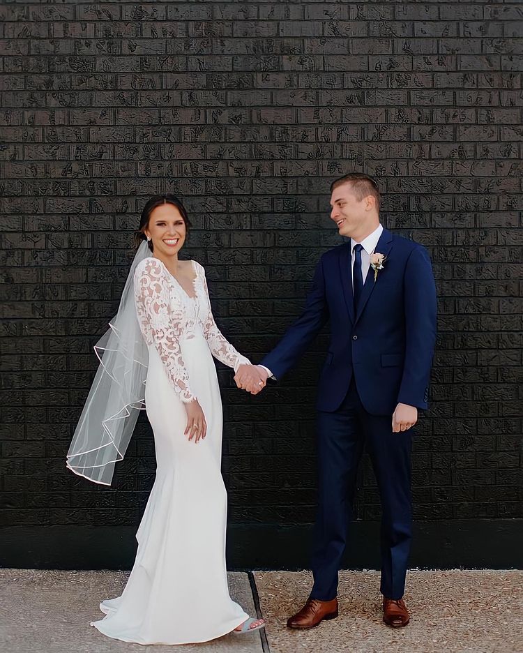Classy Mermaid V Neck Long Sleeve White Satin Lace Wedding Dresses