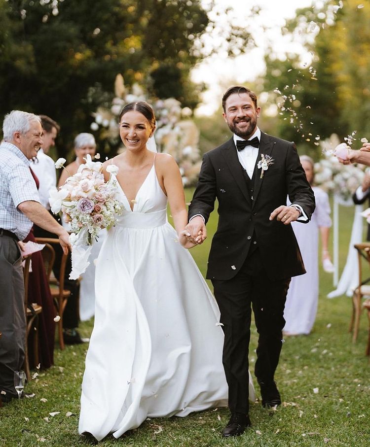 Ball Gown V Neck White Satin Long Wedding Dresses