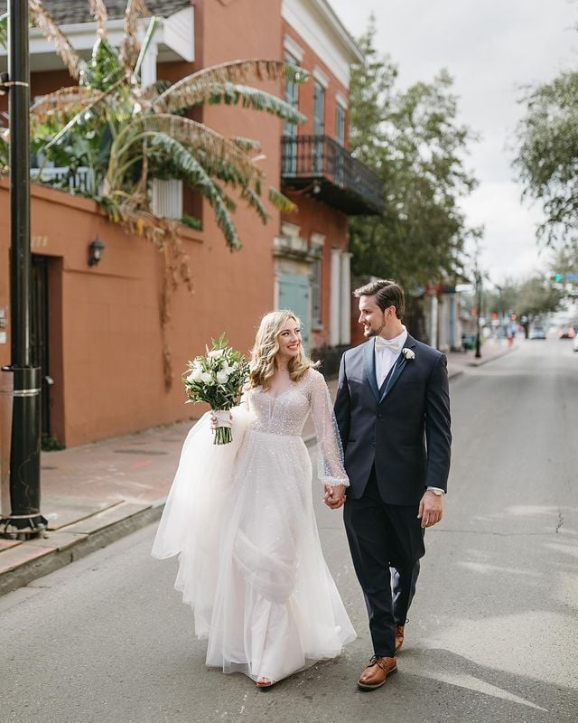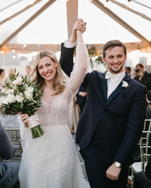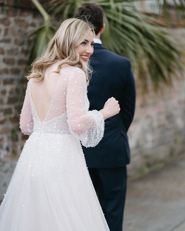 Sparkly A Line Long Sleeves Handmade Beading White Wedding Dresses