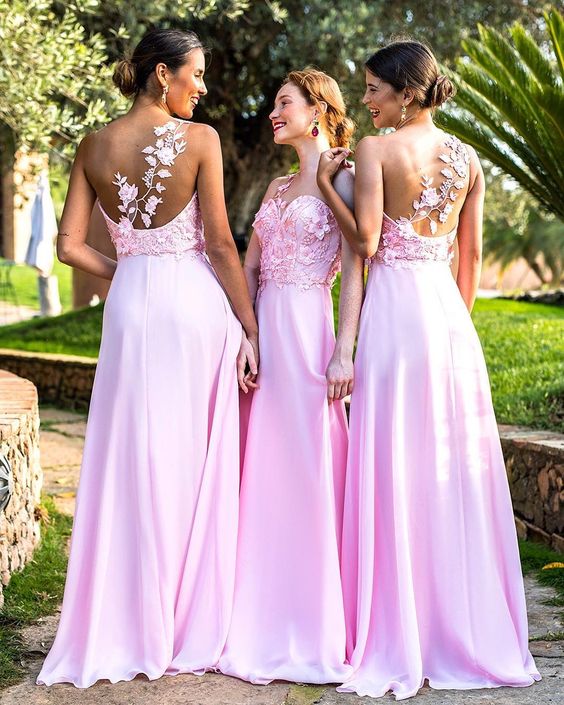 One Shoulder Pink Chiffon A-Line Bridesmaid Dress with Applique
