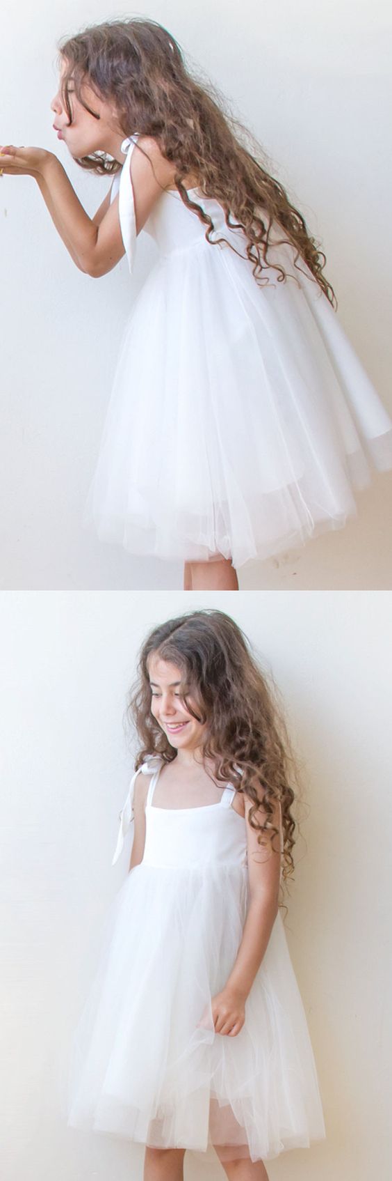 Cute Square Neck A-Line White Tulle Flower Girl Dresses