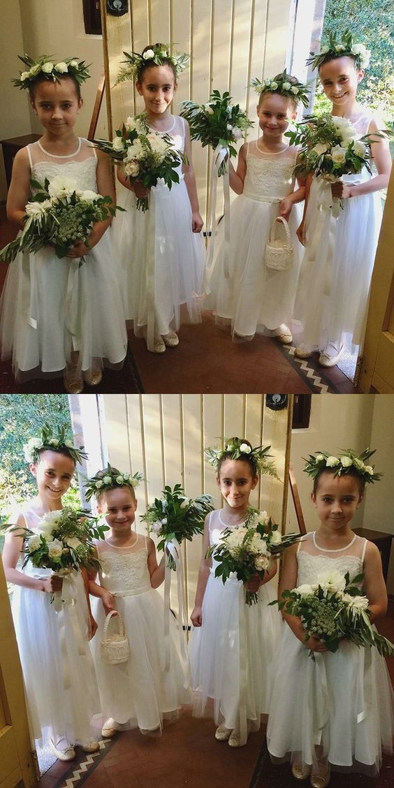 Princess Round Neck White Tulle Flower Girl Dress with Lace