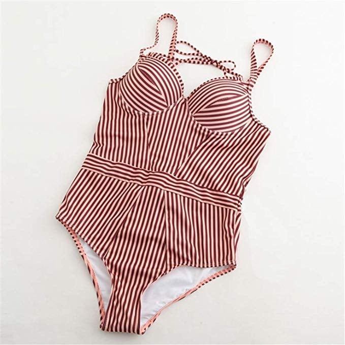 Women's One-Piece Swimsuit,Striped Print Tied Bikini Monokini Women Swimwear