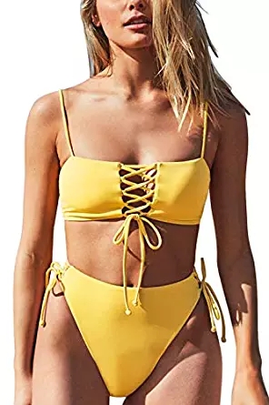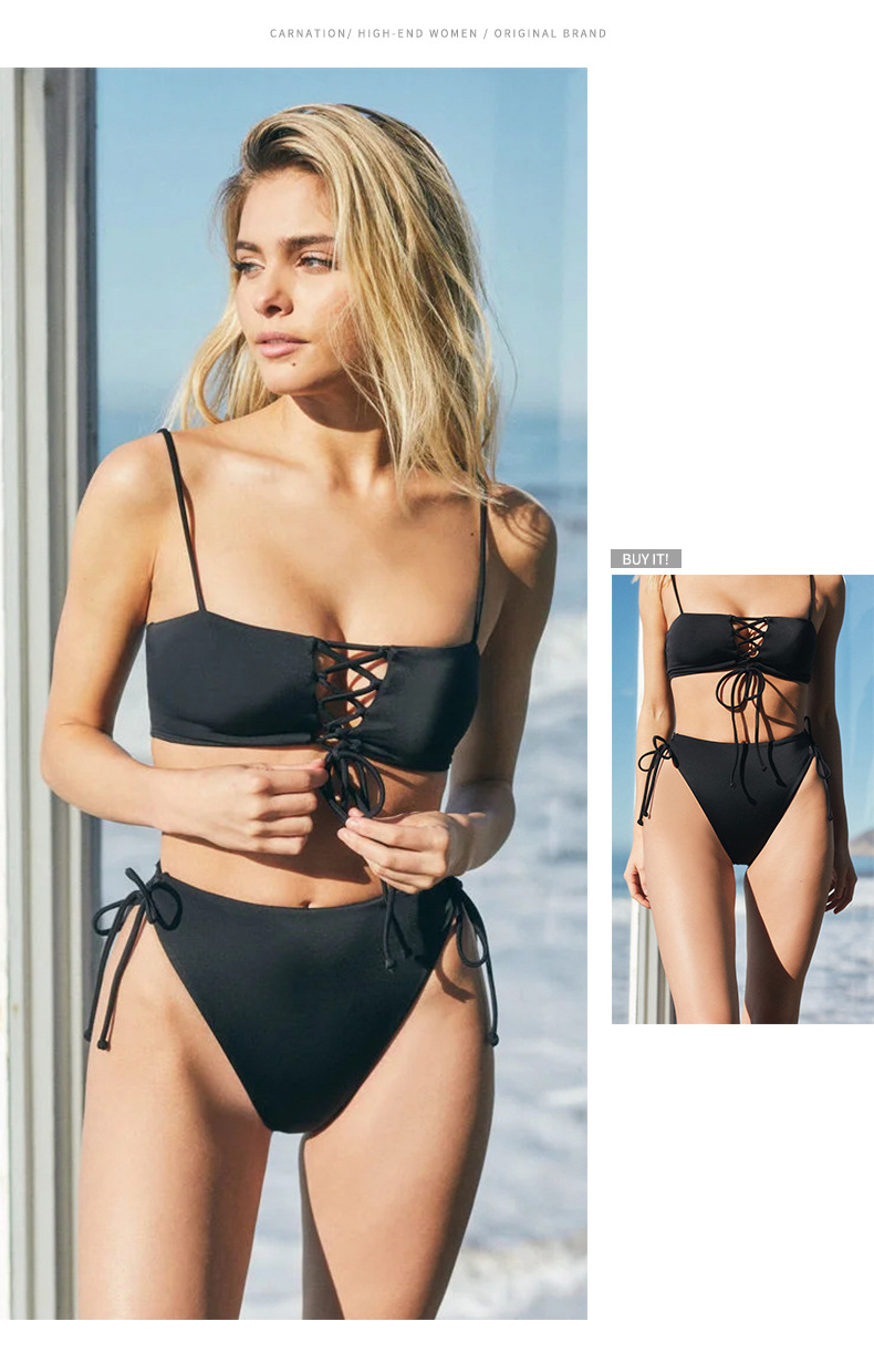 Women's Sexy Lace-Up Beandeau High Wasited Bikini Set 2PCS Swimsuits