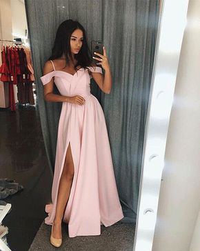 Off the Shoulder Long Prom Dresses, Split Long Evening Dresses