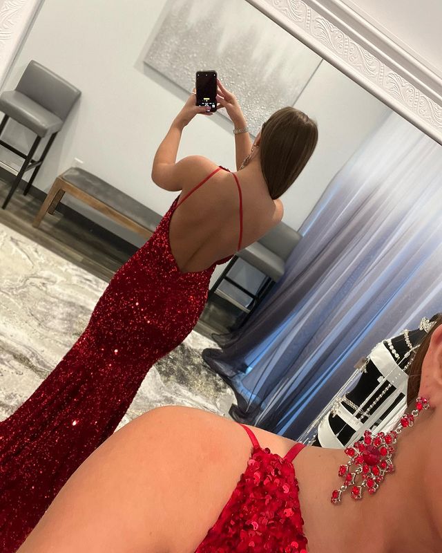 Mermaid One Shoulder Burgundy Sequins Long Prom Dresses, Evening Dresses