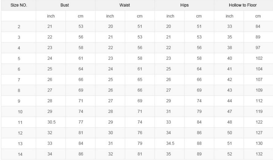 Hollow to Hem___inch/cm (for short dress) ; Hollow to Floor___inch/cm (for long dress)