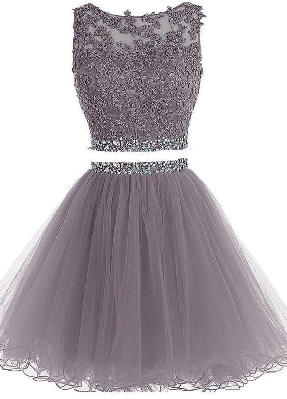 Two Pieces Beaded Tulle Party Prom Dresses custom made fashion evening gowns