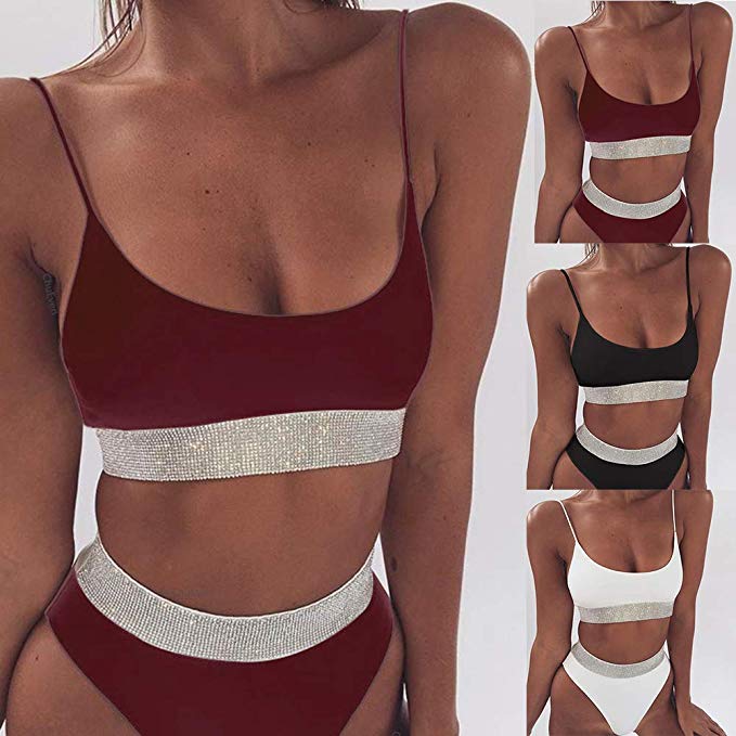 Sequin Patchwork High Waist Bikini Set Women Beach Two-Piece Swimsuit Swimwear
