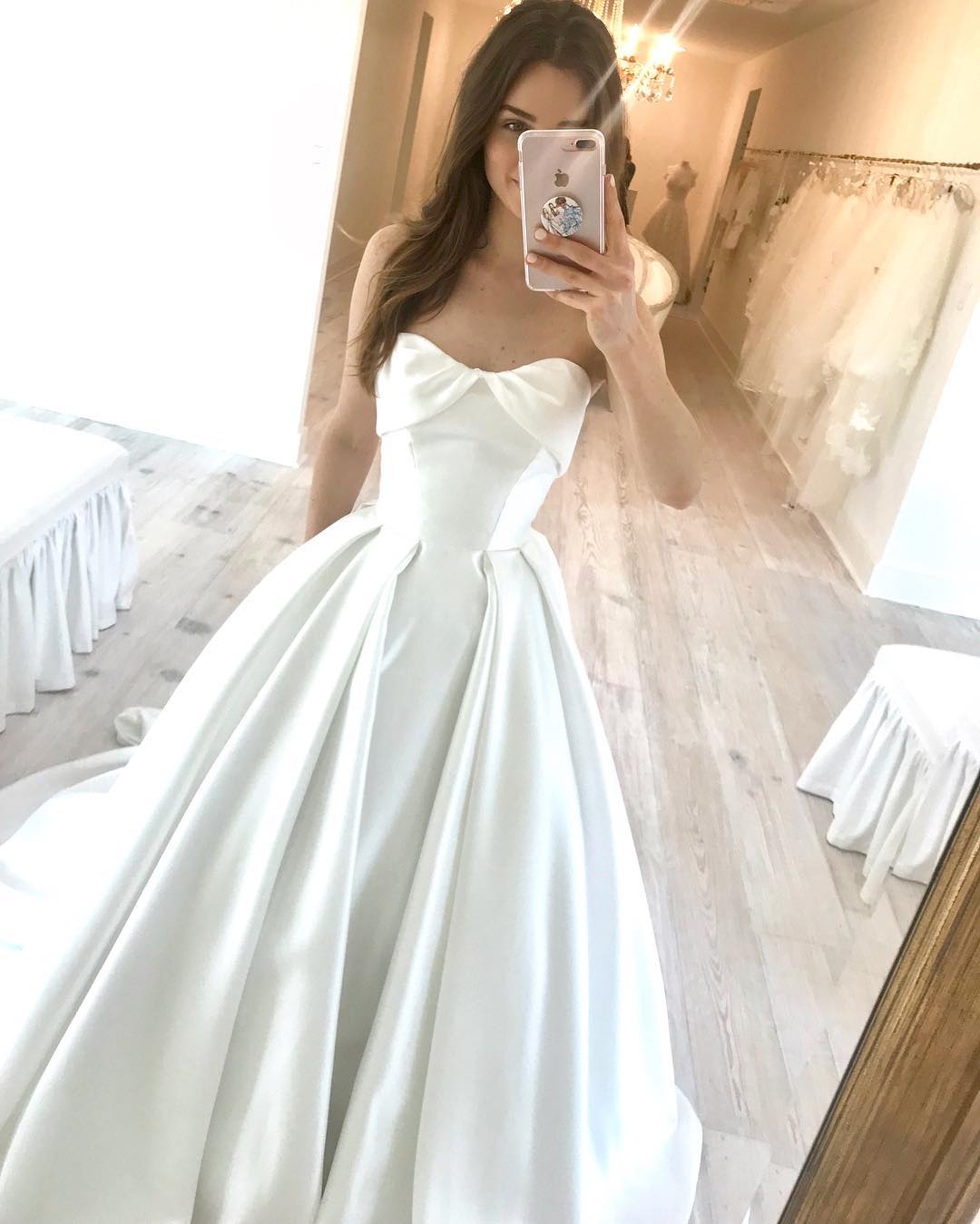 Vintage Ivory Satin Wedding Dresses, 2020 Wedding Dresses with Train