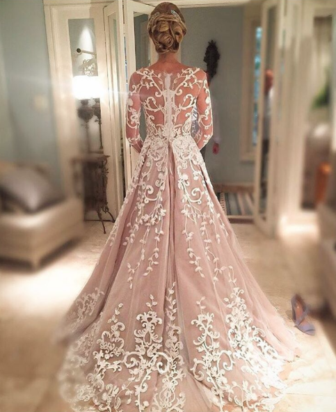 Ball Gown Round Neck Long Sleeves White Wedding Dresses with Appliques