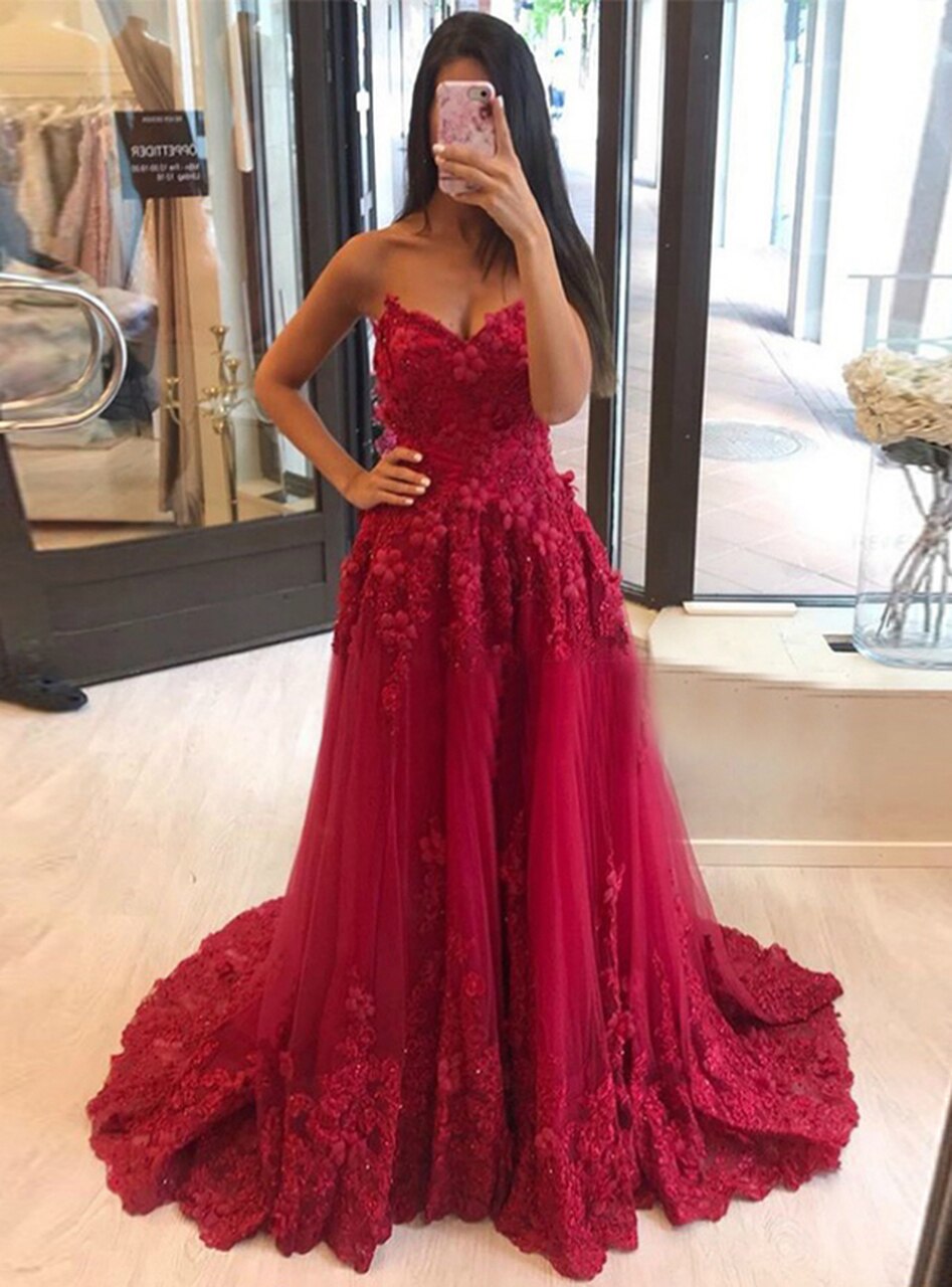 Gorgeous Ball Gown Dark Red Prom Dresses with Appliques