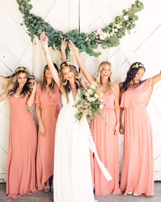2020 Charming V Neck Coral Mismatched Bridesmaid Dresses