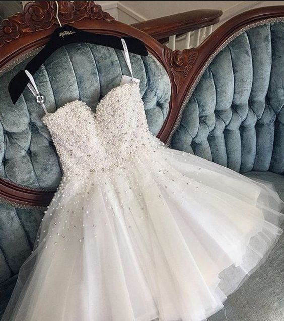 Glitter Sweetheart White Pearls Beading Homecoming Dresses, Cute Junior Hoco Dresses