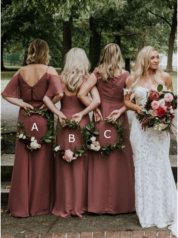 Elegant Sheath V Neck Cinnamon Rose Chiffon Split Bridesmaid Dresses Under 100