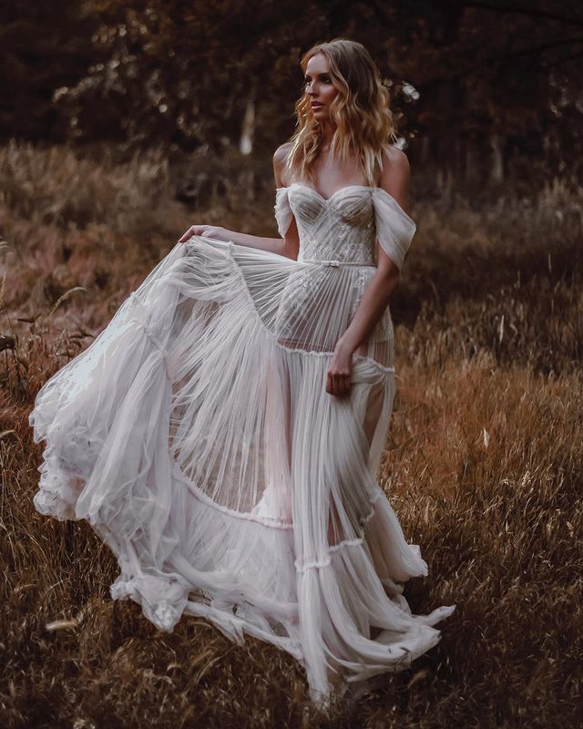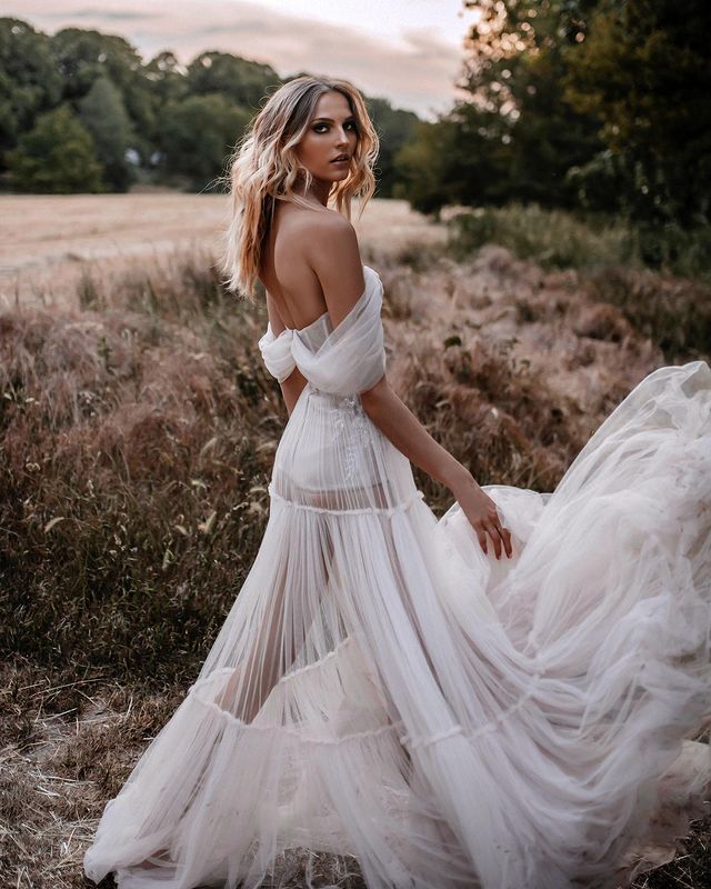 Bohemian A Line Tiered Tulle Wedding Dresses with Appliques