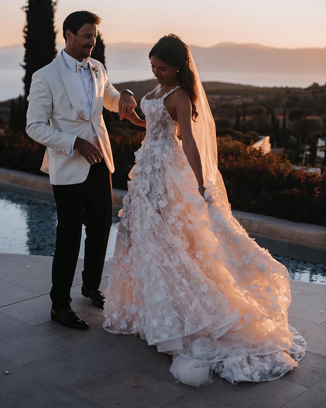 Romantic A Line Scoop Neck 3D Handmade Flowers Wedding Dress