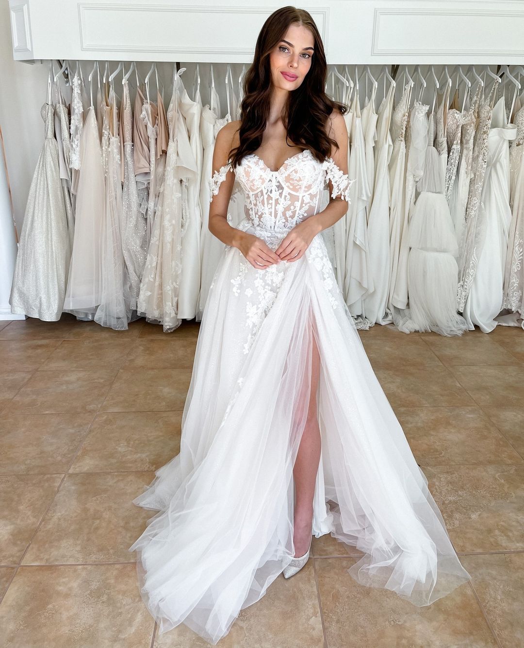 Fairy A Lian Off the Shoulder Tulle Wedding Dresses with Slit