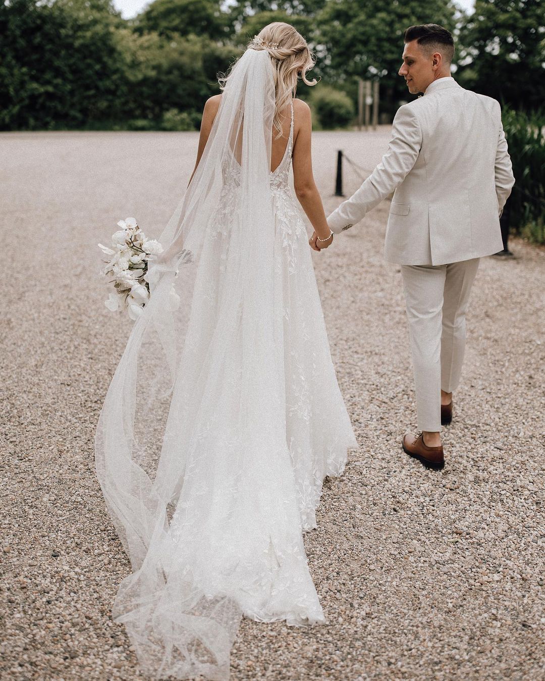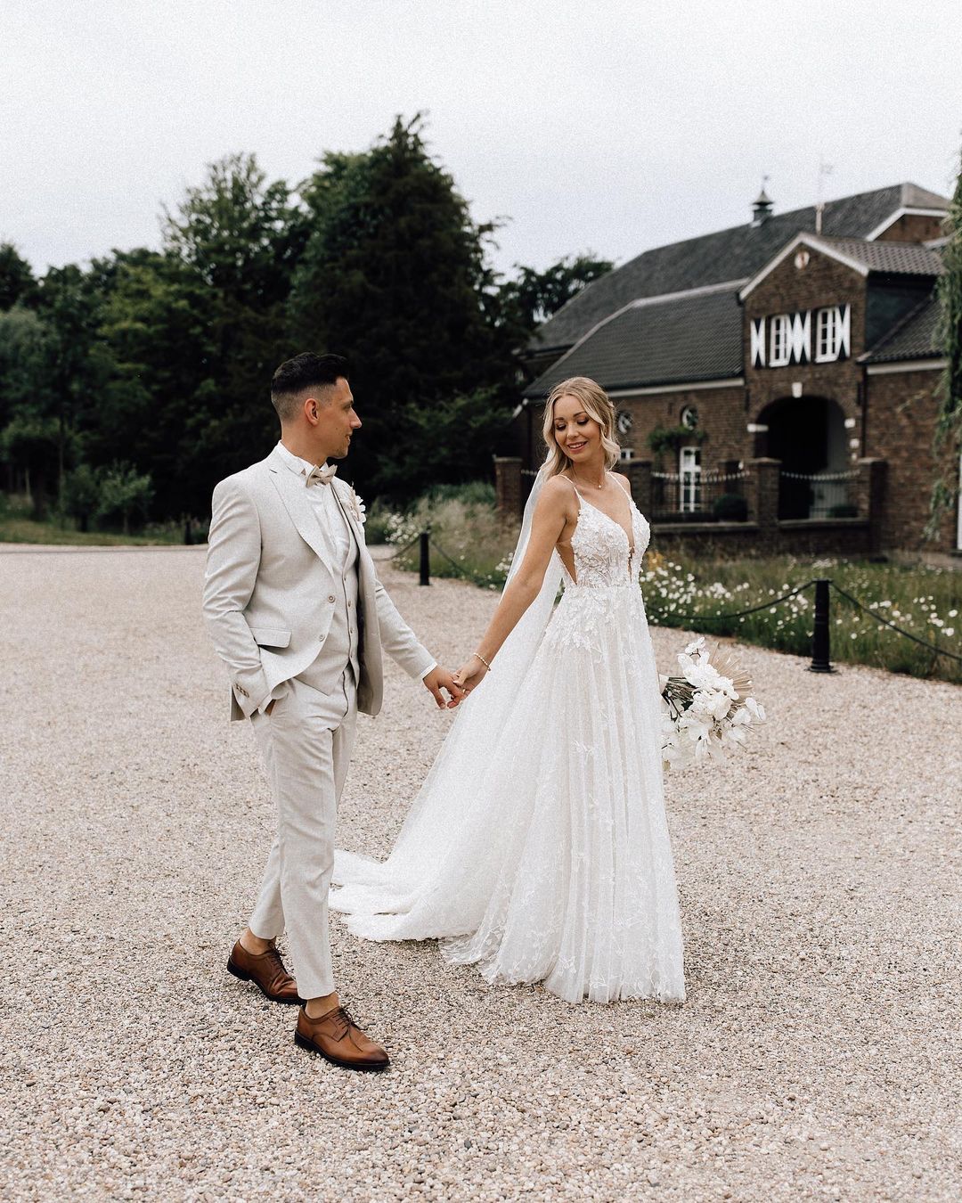 Fairy A Line V Neck Tulle Wedding Dresses with Appliques